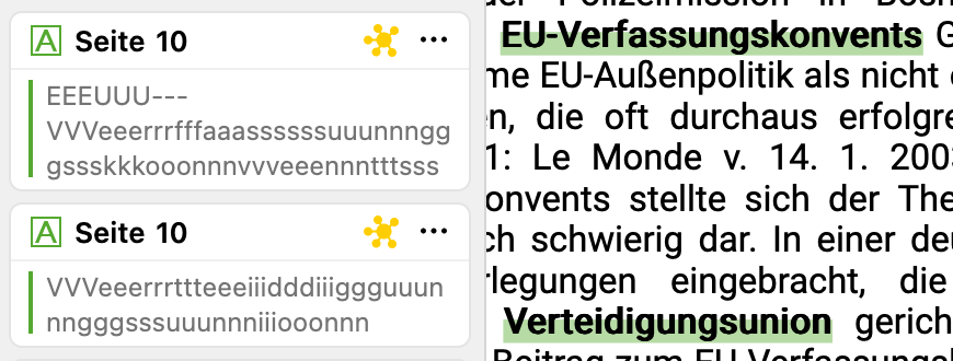 PS to point 3: Sometimes it is not only a problem with scanned texts. I got a digital text right now, but all bold words are displayed with three letters each per usually single letter when I highlight them. So eg when I highlight the bold word *Zotero* it is displayed in the annotations/highlight text as "ZZZooottteeerrrooo". Really annoying. Not only in the highlights, but this is also makes ctrl+F/cmd+F completely unusable.