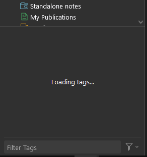 In the Debug ID below, I close the Tag Selector and reopen it through the "View" -> "Layout" menu. The Tag Selector is then stuck at loading: