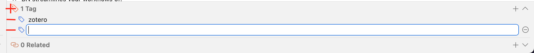 In Zotero 7, the ‘+’ and ‘-’ buttons have been moved to the right side of the record description records window.