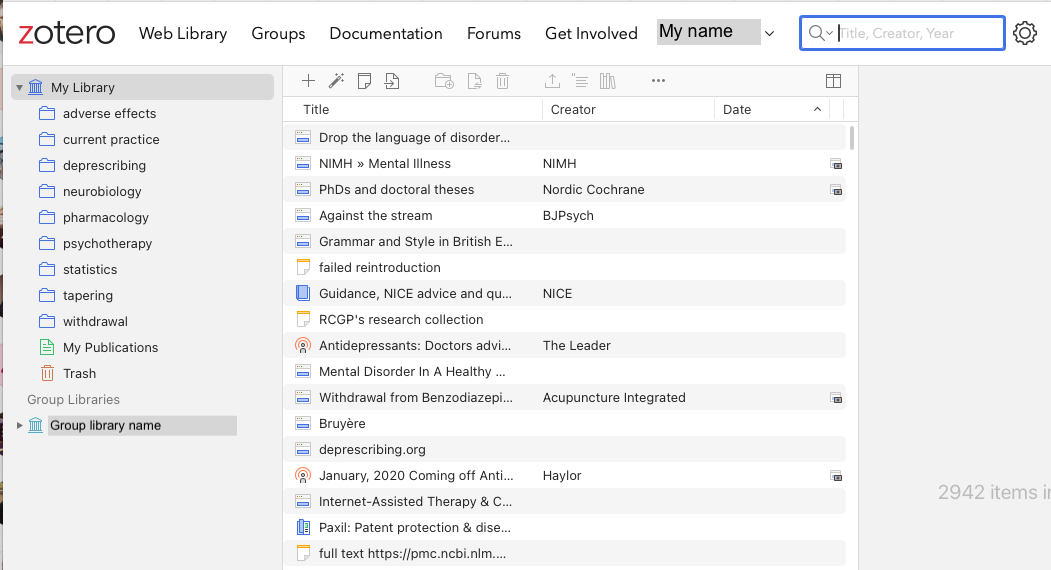 My view of the group library:
