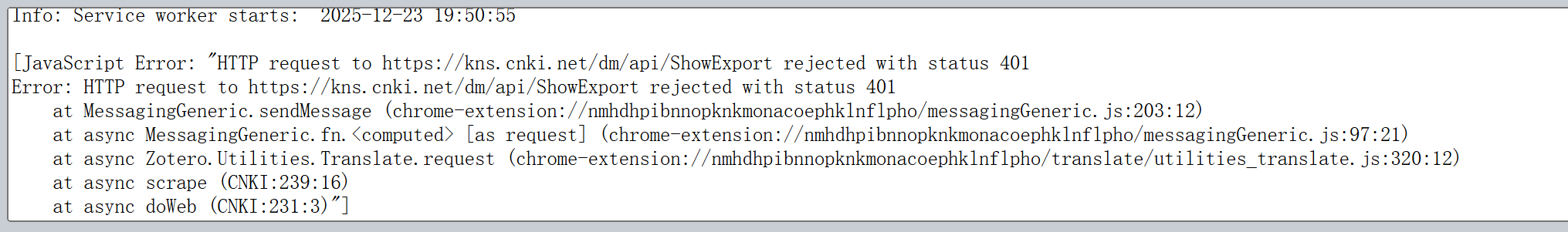 Zotero Connector 在知网 (CNKI) 上保存文献失败,报告大量JavaScript错误