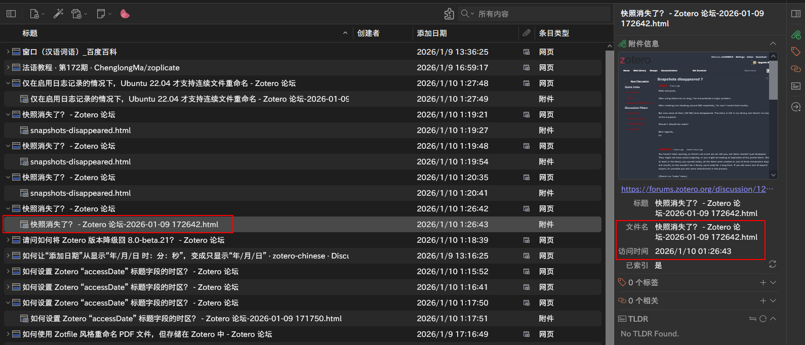 Additionally, I noticed peculiarities in the automatic renaming of attachments. Some webpage snapshots are automatically renamed according to the title template, while others are not. Moreover, the default filename for web snapshots appears to be extracted from the final segment of the webpage URL—the field after the last slash—rather than from the tab/webpage title.