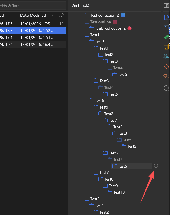 When hovering on a collection in the Item Pane of a note, there is no delete button to remove the note from that collection: