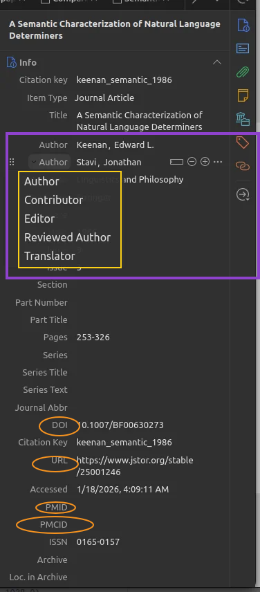 I appreciate the work that has gone into the new ID fields... in just adding them for users to use. The new fields describe the objects in different ways (dimensions). I would like to make a request related to the UI for fields related to Identifiers (DOI, URL, PMID, PMCID, etc.)