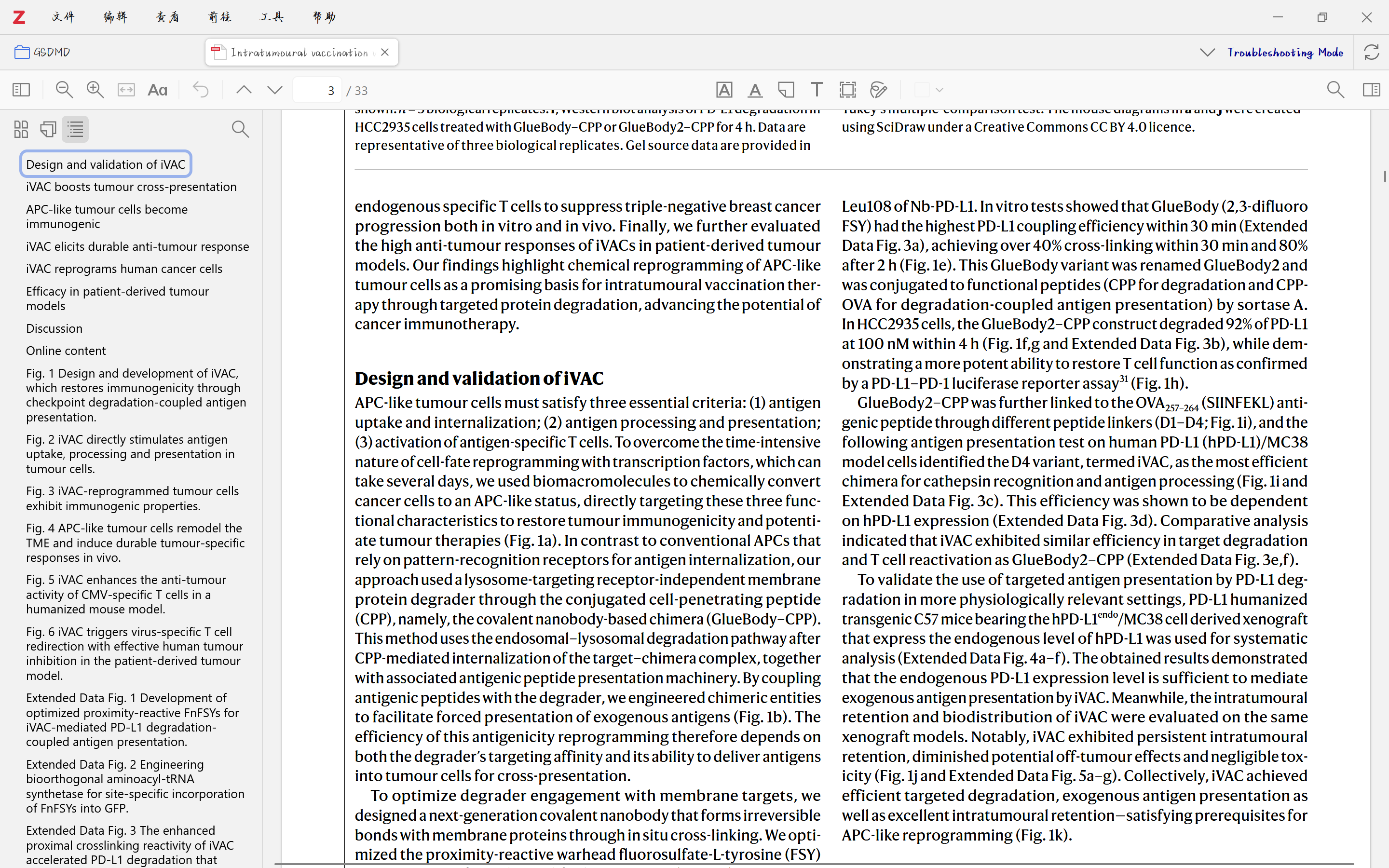 After restarting Zotero 8 and opening the reading view, the right-hand sidebar is closed by default; whenever you switch the tab of the document you are currently reading, the left-hand sidebar (Outline) opens by default.