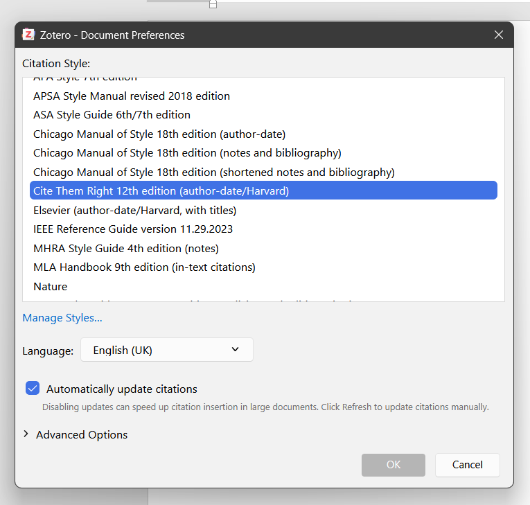 Zotero 8 - Create Bibliography minor bug