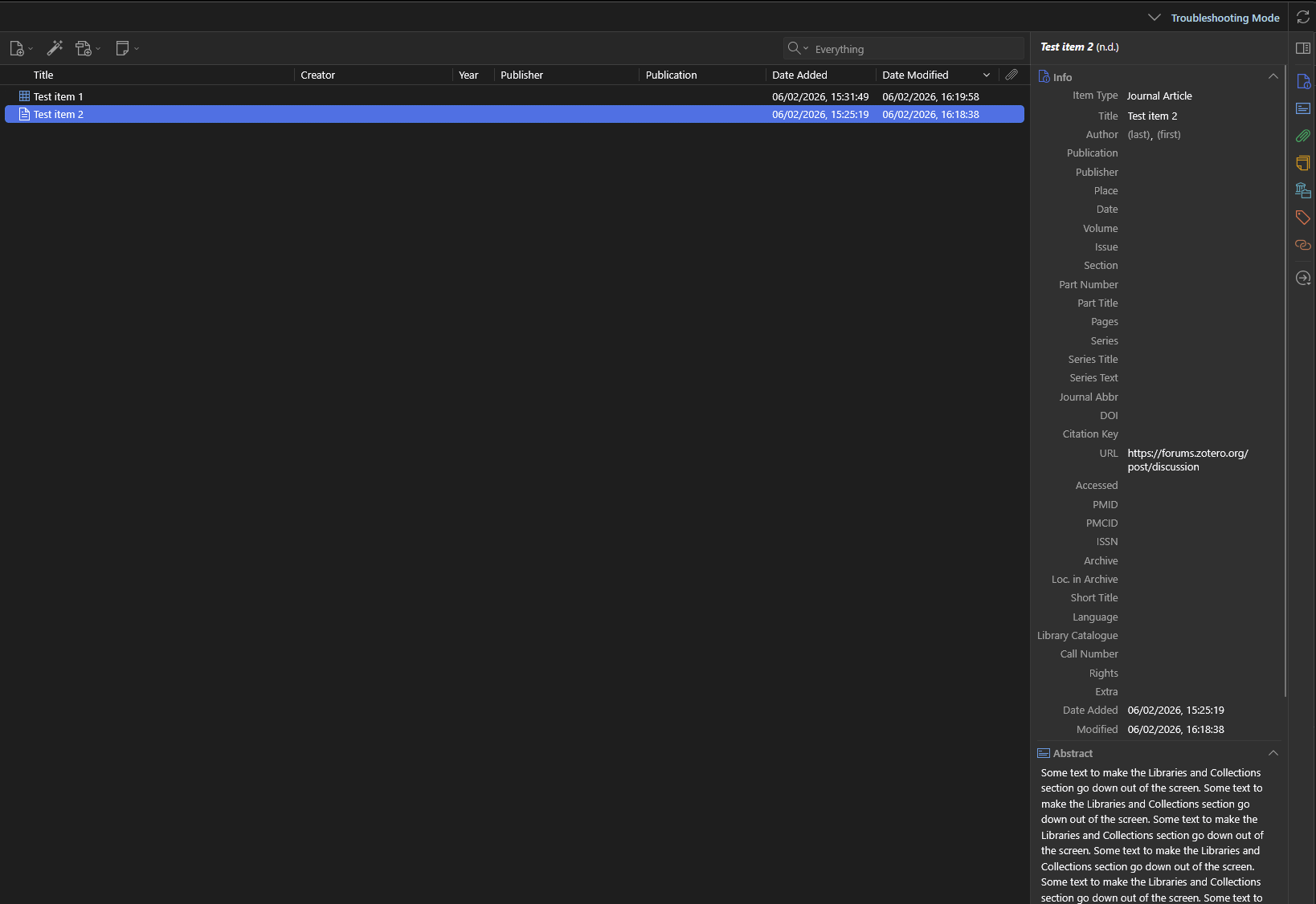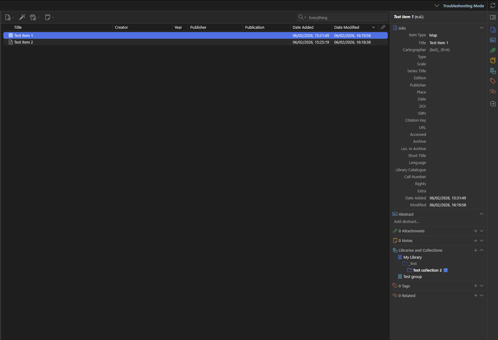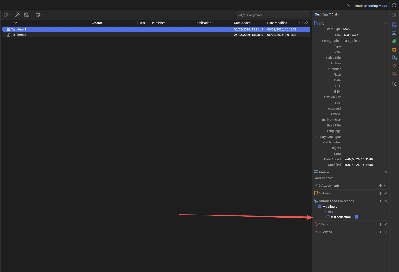 4) Go to the second item, but this time go down to the "Libraries and Collections" section in the Item Pane so that it is loaded: