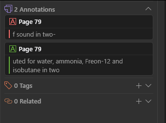 6) Switch to another PDF file attachment also containing annotations in the Items List and back to the first one.