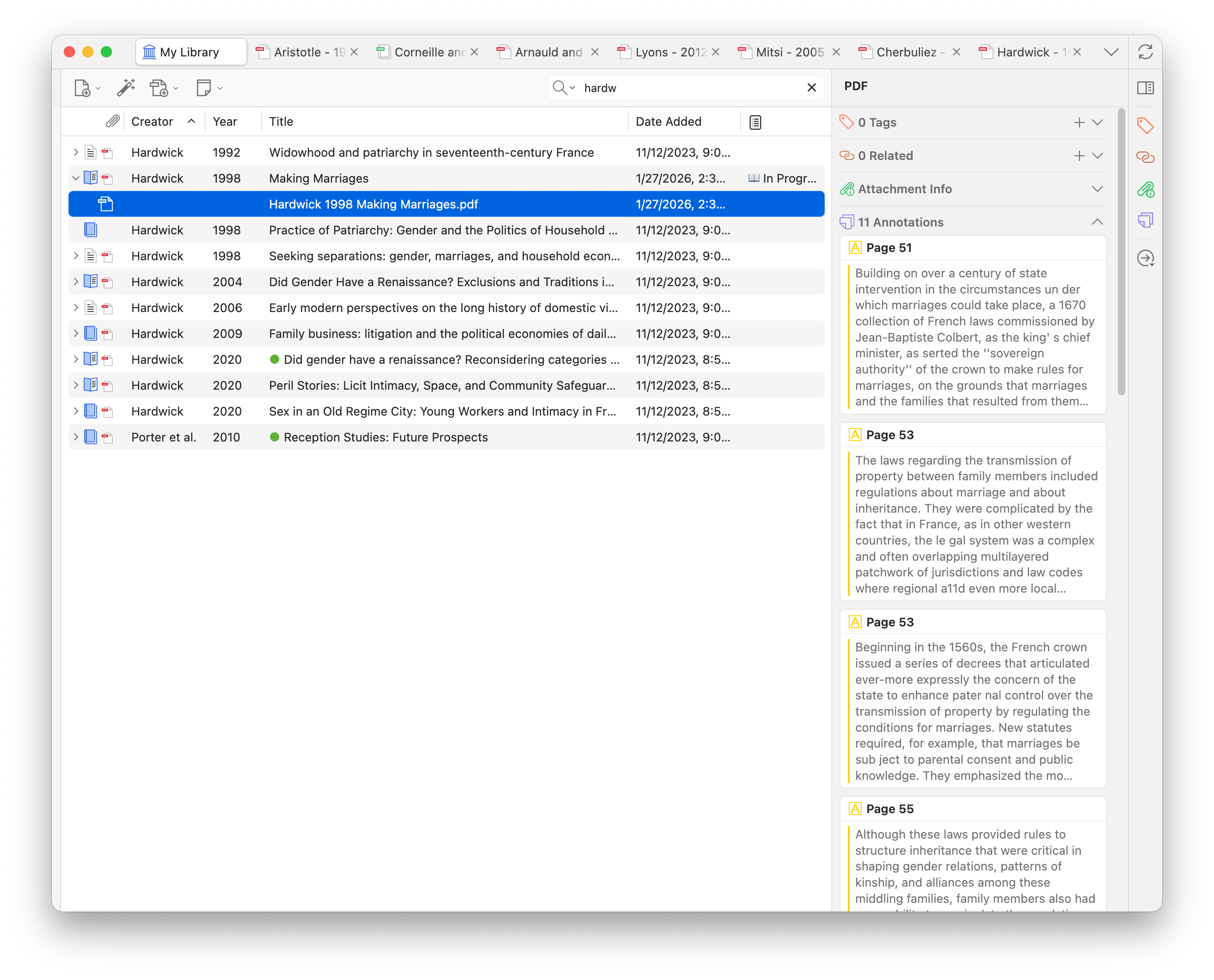 >Annotations you make on PDFs, EPUBs, and webpage snapshots now show up under their parent attachments in the items list.