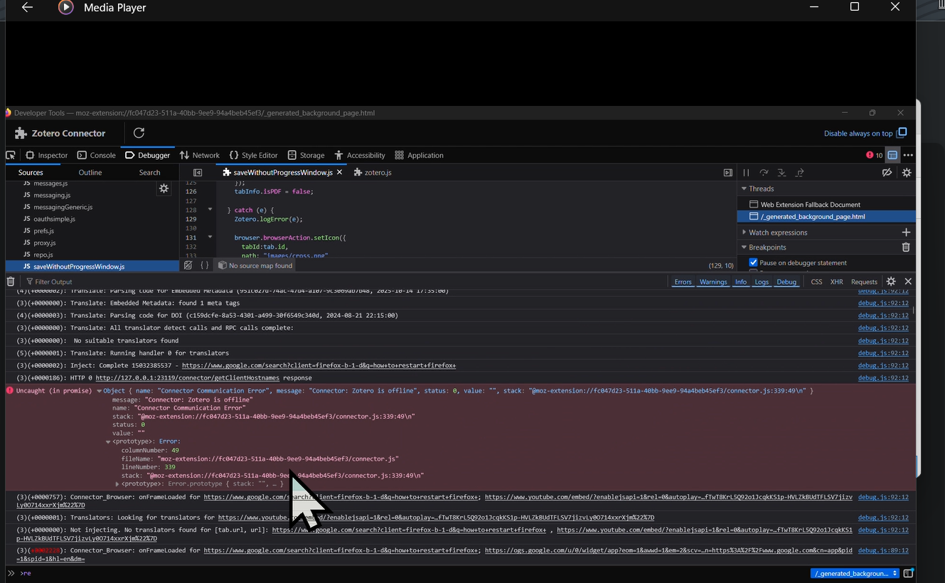 Zotero status is "down"; can't save screenshots/files/pdfs