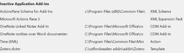 I have looked in Word | Options | Addins | Inactive Application Add-ins and it is listed in there as an Inactive Template.