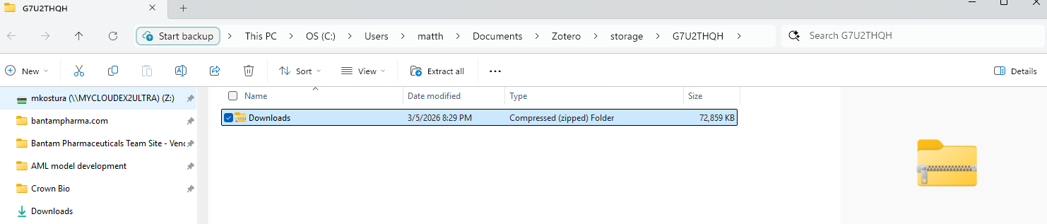 The files are clearly saved in Zotero storage as a zip file. The file association has been changed.