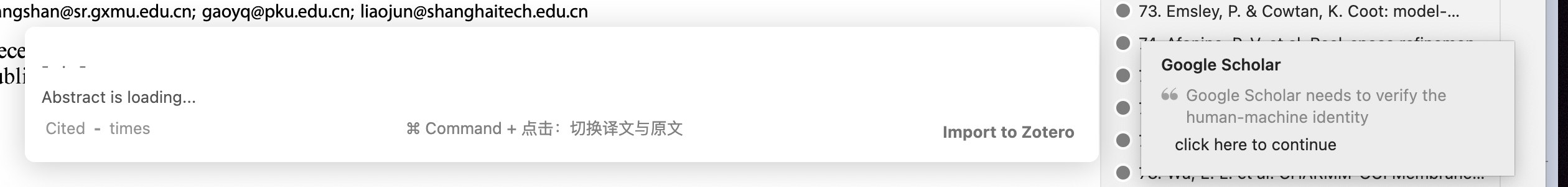 When reading literature, an exclamation mark appears in the upper right corner, but Zotero is functioning normally. Today, when the computer was turned on, Zotero closed and exited by itself. I reopened it, and it was because of an automatic update of the plugin. Then, when reading, the exclamation mark appeared, showing this message: "Request timed out after 30000 ms", as shown in the picture. It is not clear whether this issue falls under: