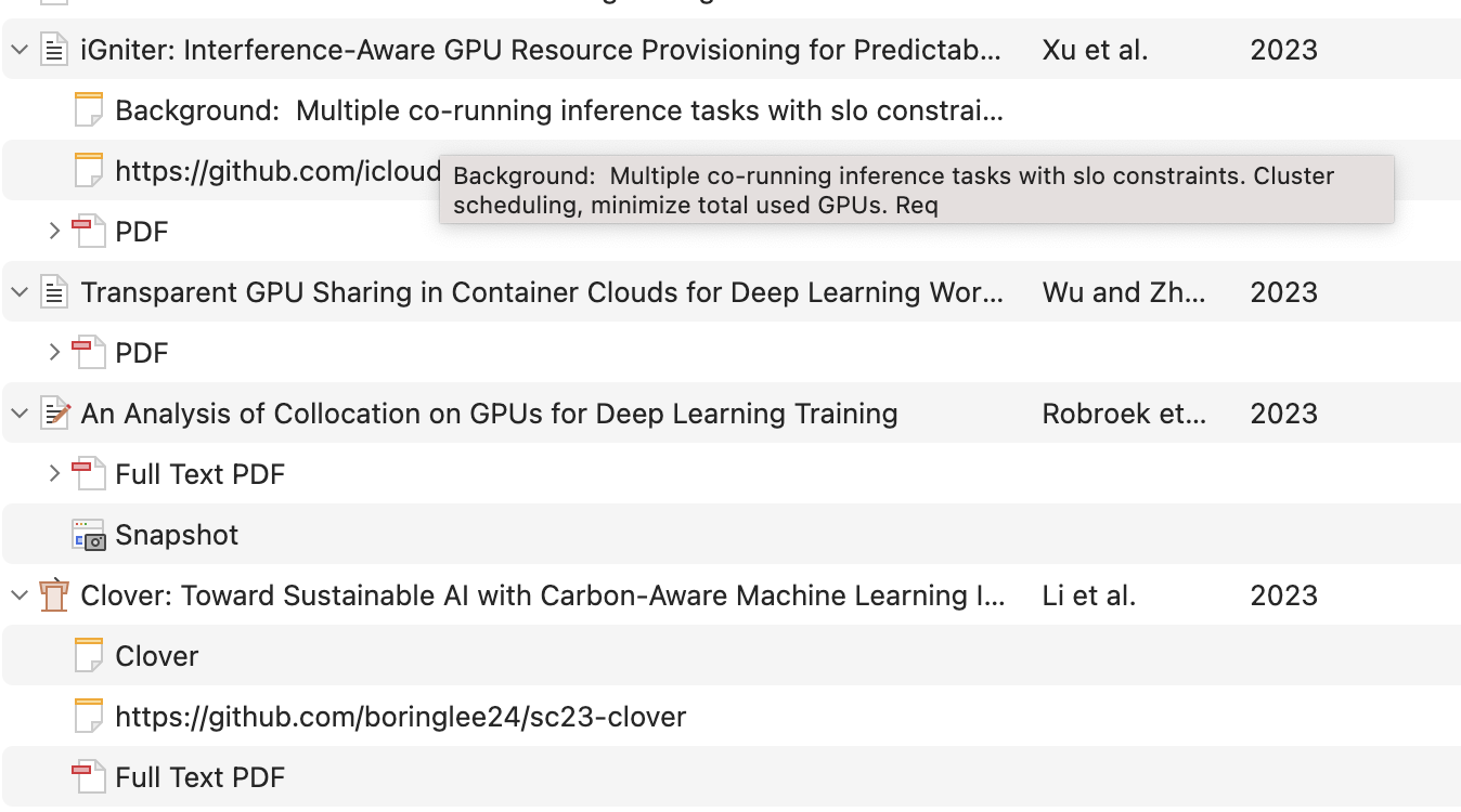 One feature that I relied on is the expand all shortcut, which expands all items' notes at once as shown in image below. This is very helpful because I can't really link the papers' contents with their titles great, but once I see my notes I clearly relates the items with their context.