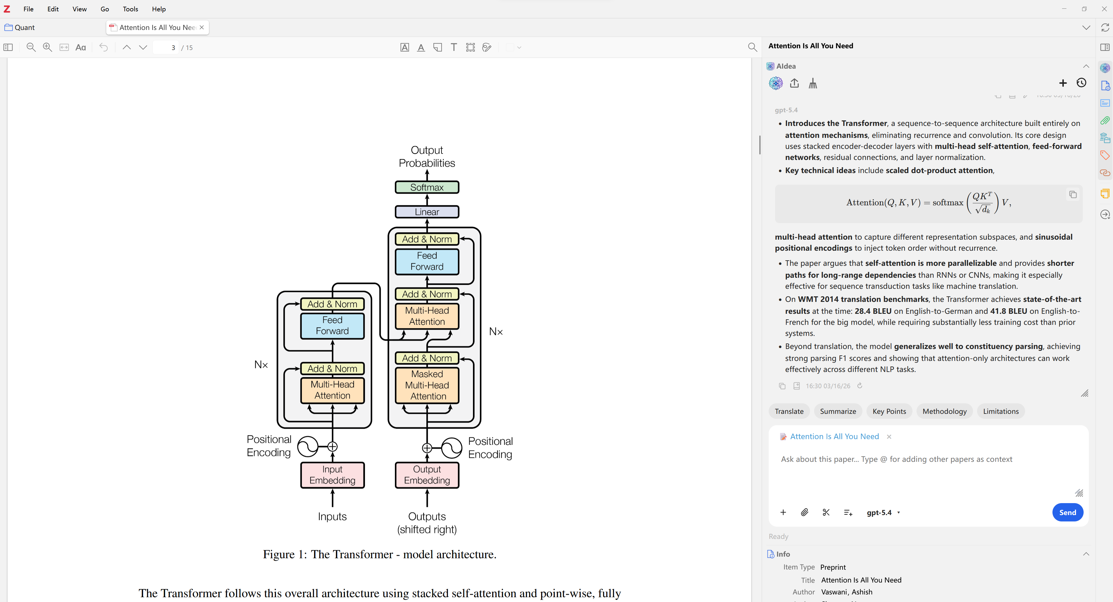 - Paper-Aware Context - select text in the PDF reader and use it as context