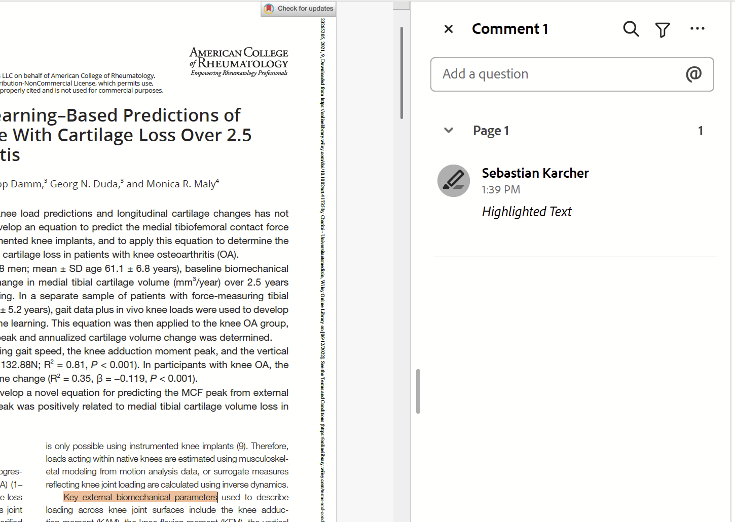 • I'm not sure how you're annotating, but this isn't a standard Acrobat highlight: you can see that every highlight has a little speech bubble next to it in the text (Acrobat's way of signalling an annotation) and it then displays the annotation (i.e. manually written text) under the label "Testo evidenziato" (Highlighted Text in the English version). If you just highlight text, Acrobat just displays "Testo evidenziato" in the comments sidebar, no text at all.