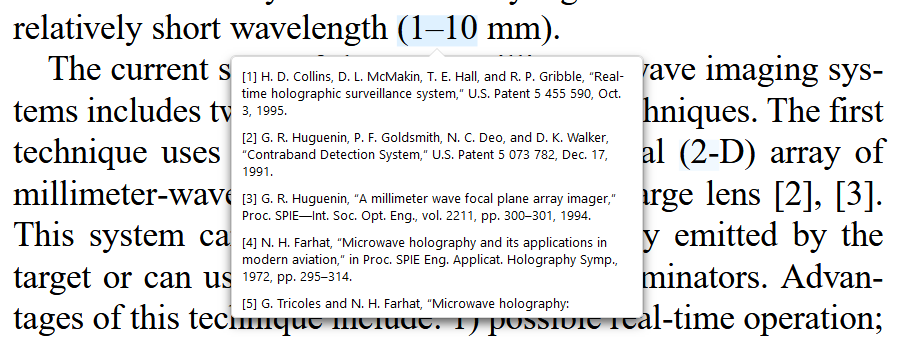 The 1-10 mm is interpreted as references 1 through 10, meanwhile citations 2 and 3 (on the right) do not show correctly: when I hover over them, I don't see the references.