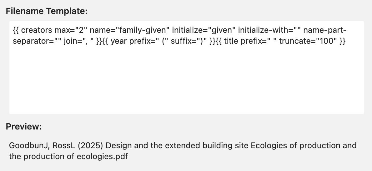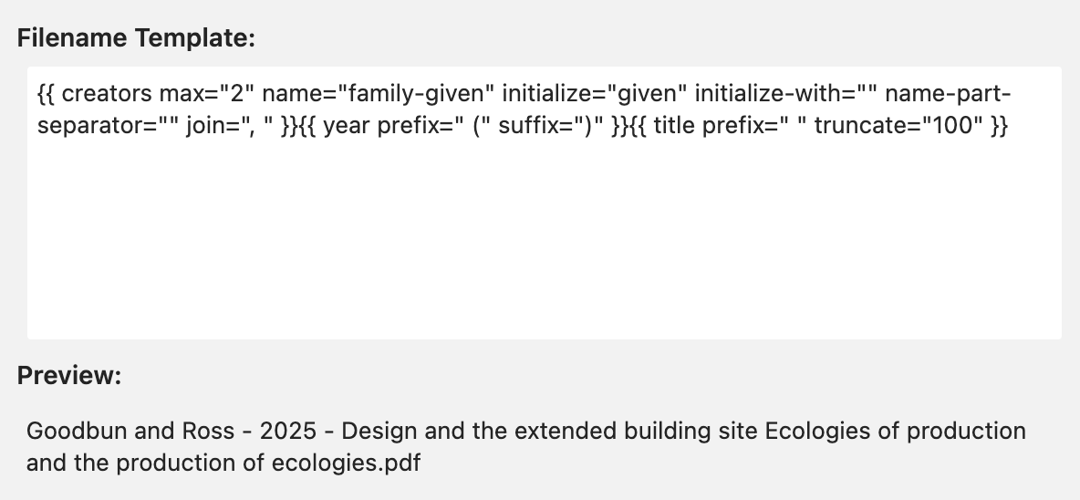 I've encountered what appears to be a bug with the Filename Template settings in Zotero 8.0.4 on macOS 26.3.1.
