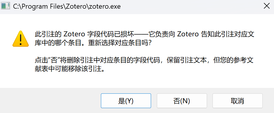 Zotero字段代码已损坏 怎么解决