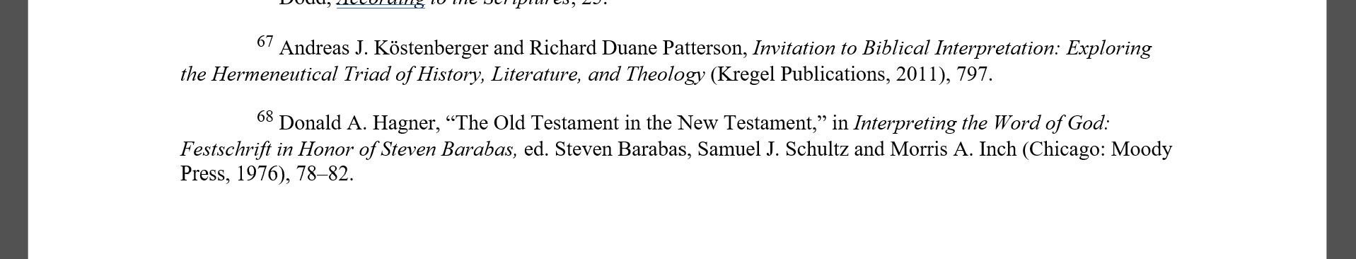 Now that I am editing and finishing, I am seeing inconsistency in the place/location of the publisher not being listed in my notes and bibliography. They should all have the place and publisher according to SBL 2. I have an example to show where two notes should be formatted the same, but one has the place and the other does not...