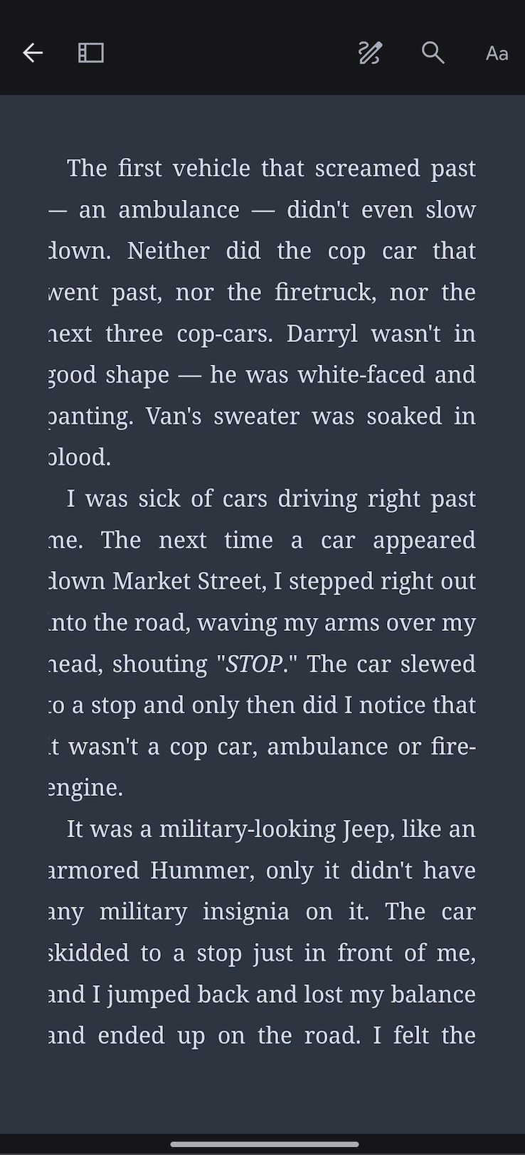 Frequently text of an epub is cut-off on the left side. Issue is limited to the left side.