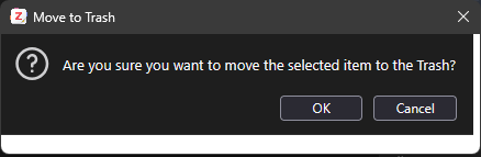 5. Displays a "Move to trash" Dialog containing the visual artifact bug.