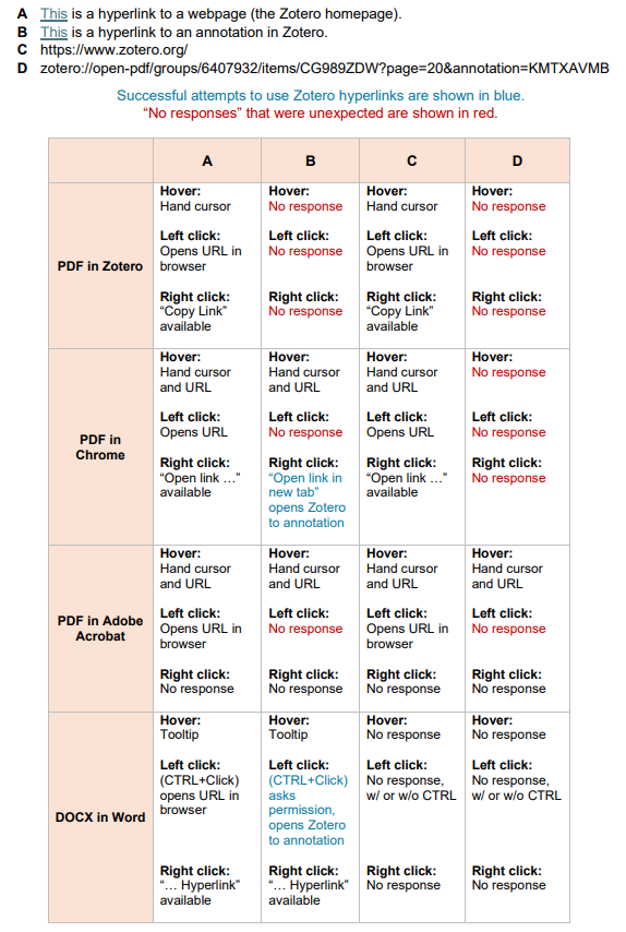 However, it seems that the Zotero PDF reader does not recognize Zotero links (e.g., zotero://open-pdf/...). The Zotero links behaved exactly like regular text when I opened a PDF (made from a Word document) in the Zotero PDF reader.