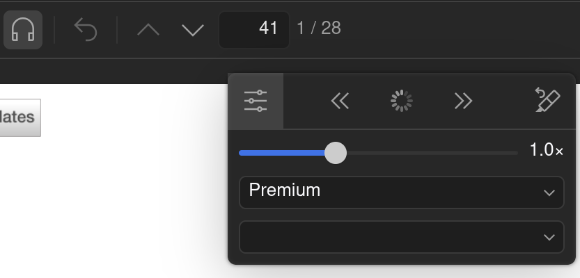 I am very thrilled about the new read aloud feature and wanted to try it out on Zotero Desktop (9.0) on Linux (installed from source on Fedora Kinoite 43 and updated automatically). However I already expected it might not work, because I sync my attachments via my universities WebDAV, so maybe there would be problems with the tts service having nothing to read from the Zotero servers. Nonetheless I went ahead and activated the feature on a well formated english text, and in the setup menu chose the default "norm" option. My computers fans immediately started running and the loading circle appeared, but nothing else happened, even after waiting an hour (see screenshot). The output selection is also fixed on the "Premium" toggle, and I can not change it to norm or local (which I believe would help me fix this issue) .