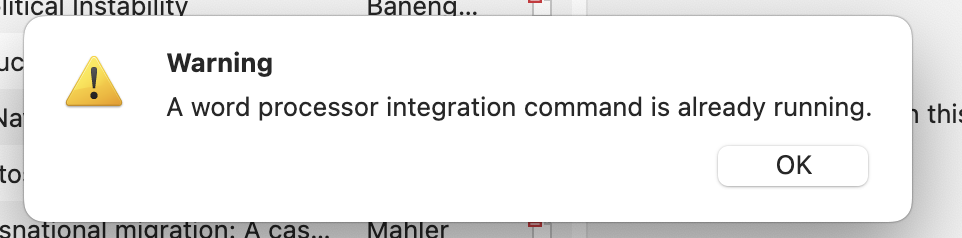 adomasven Zotero TeamRestart Zotero and refresh the Google Docs tab and try again. If after pressing Add/Edit Citation in Google Docs the citation dialog doesn't appear, look through open Zotero windows.