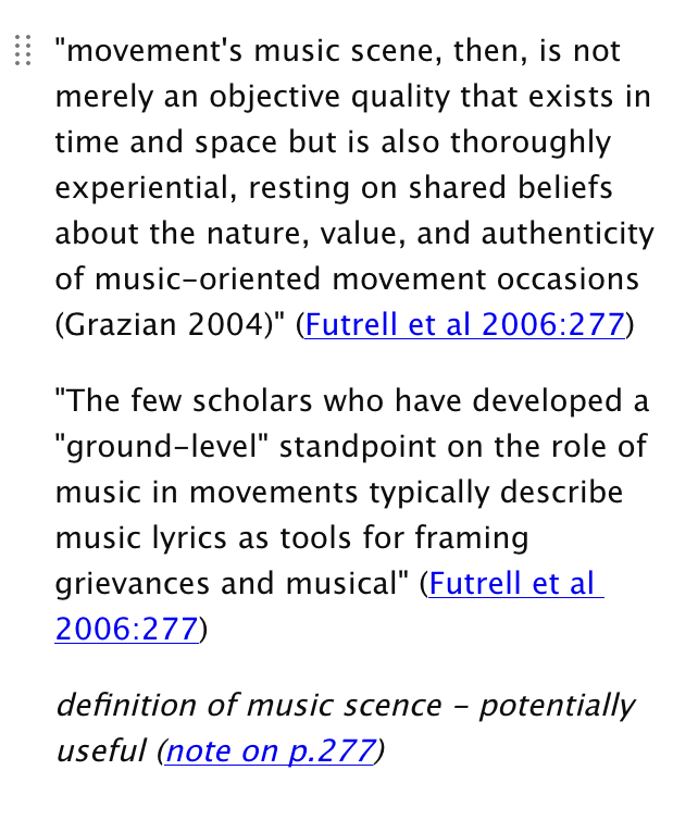 *IN ITALICS* definition of music scence - potentially useful (note on p.277)