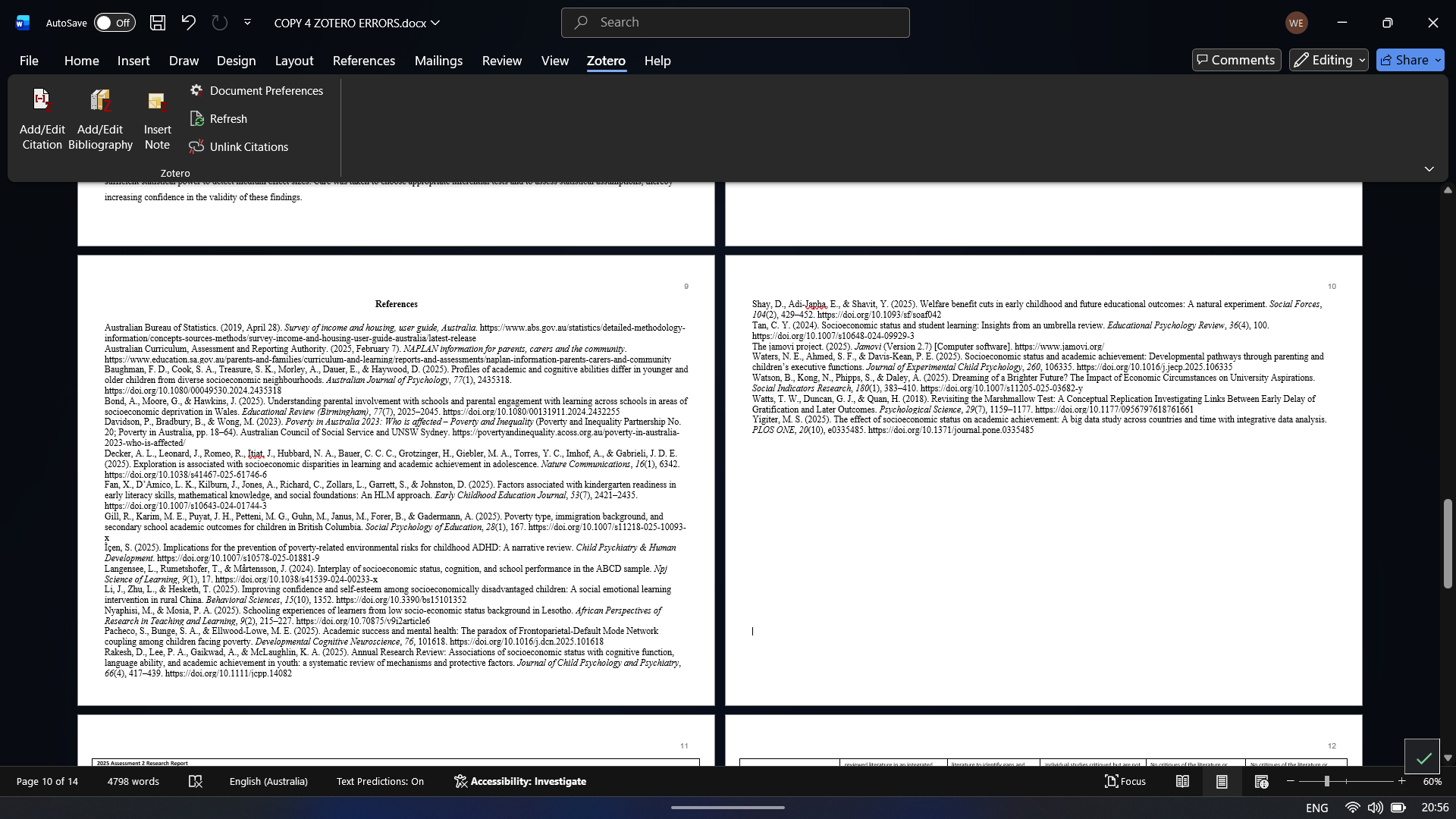 2. Open document containing the in-text citations placed by Zotero Word Processor Plugin.