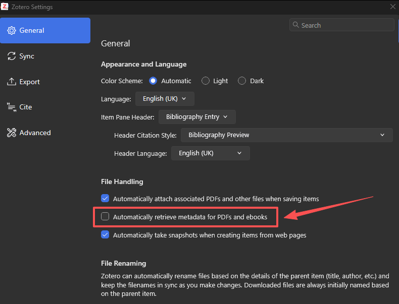 • Thank you for the detailed explanation. I have unchecked the automatic retrieval of metadata option as I do not have a large library of these standalone pdf files. As and when needed I can create a parent item with appropriate metadata and attach a link to these pdfs.