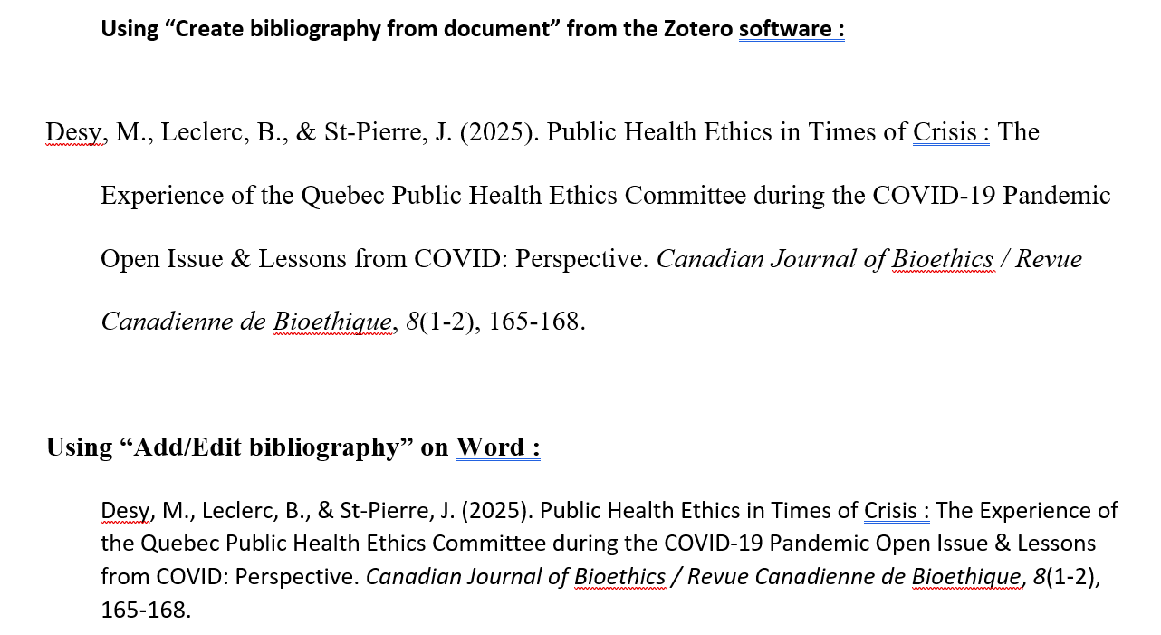 However, I have the correct formatting if I generate the reference directly from the software and copy paste it to Word.