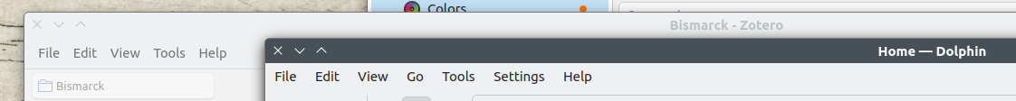 Zotero with gtk3-nocsd compared to Dolphin: note the menu bar in Dolphin always stays light, as it should.