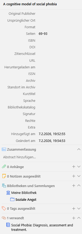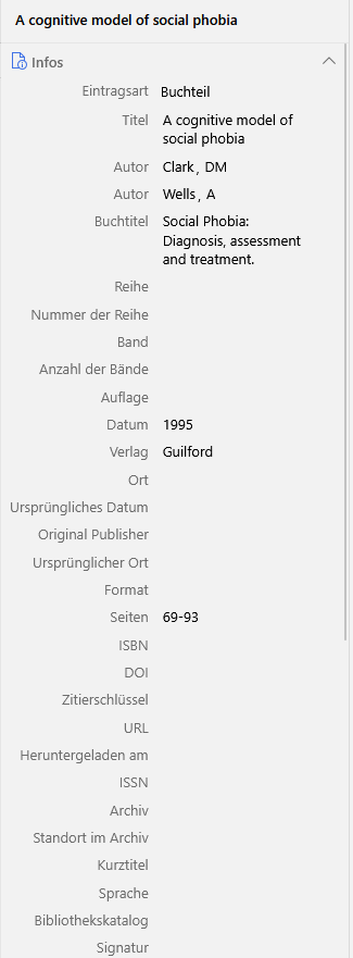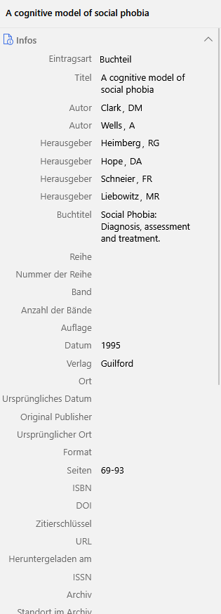 Clark, D., & Wells, A. (1995). A cognitive model of social phobia. In Social Phobia: Diagnosis, assessment and treatment. (S. 69–93). Guilford.