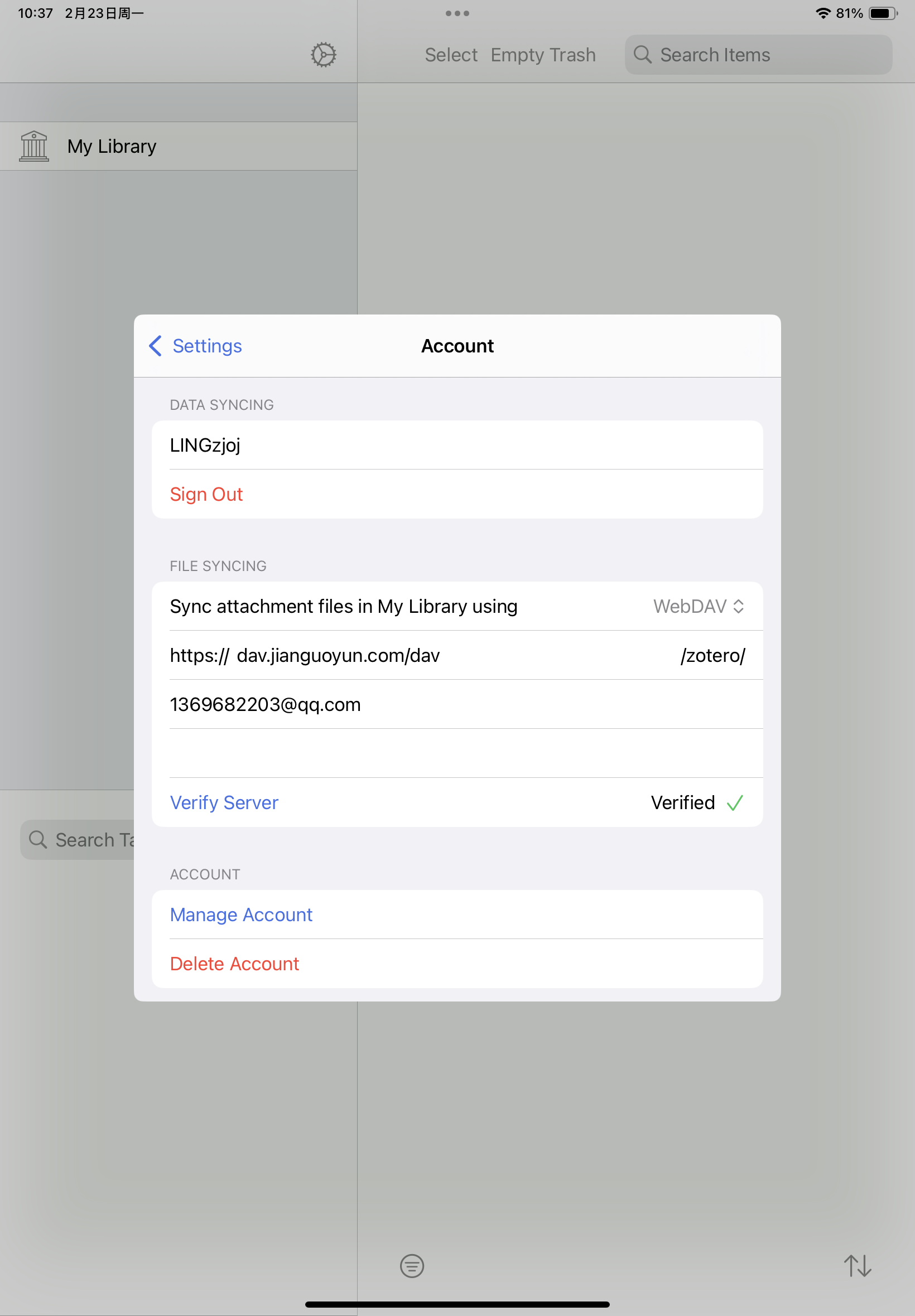 Just as I initially asked, currently the documents are all on the PC side, but the PC side only shows the username and does not display the email address, as shown in F1. I want to synchronize the documents on the PC side to the iPad side. Therefore, I created a webDAV synchronization method. Both the PC side and the iPad side show that the synchronization was successful, but I don't know why the iPad side never displays it. Thank you very much for your answer. My English proficiency is not very good, so I'm not sure if my expression is accurate. The overall current problem is that I forgot the email address bound to the PC side. Now I want to synchronize the content to the iPad side. Could you please tell me how to operate? Once again, I sincerely appreciate your help.