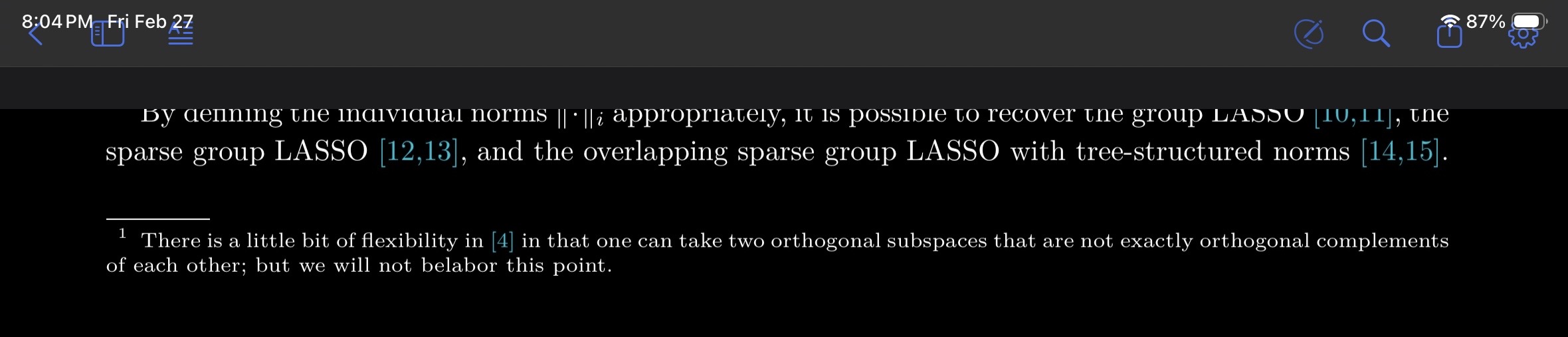 When viewing a PDF on my iPad, hiding the toolbar leaves a grey rectangle at the top of the screen. Sometimes the rectangle appears when the toolbar is active, but the toolbar is pushed up into the top of the screen, making it difficult to tap the buttons (for example, search or show annotations). This started happening after I updated my iPad to iPad OS 26.
