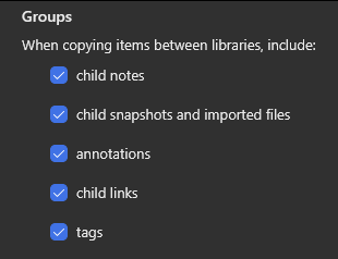When importing an item from a Zotero user's or from a group's online library, tags and notes are not imported. Is that normal behavior? Is there a personal option we can activate to import an item with its tags and notes? I'll push my luck and ask, could it import related items as well?